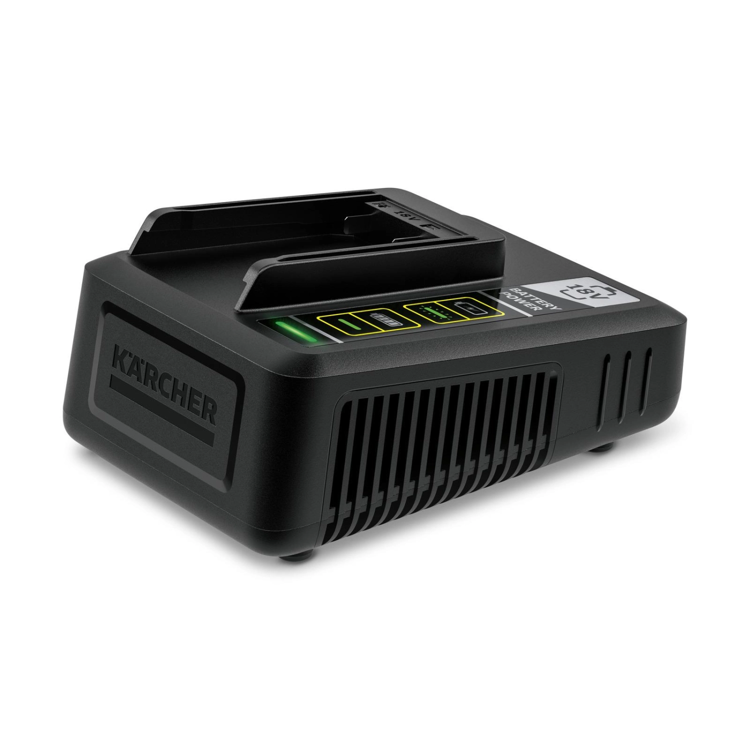 Быстрое зарядное устройство заряжает аккумуляторную батарею Karcher 36 В / 2,5 Ач до 80% всего за 48 минут и может использоваться для всех батарей на 36-ти вольтной платформе Kärcher Battery Power.