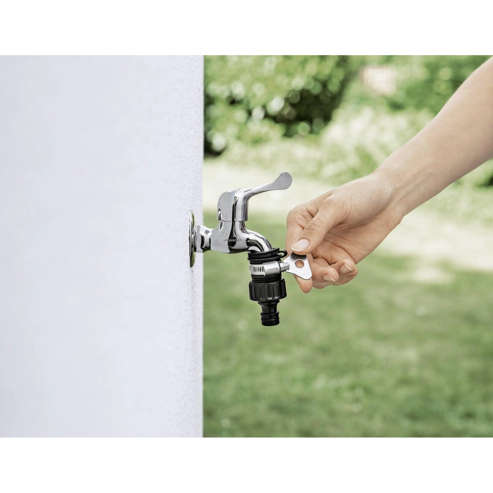 Адаптер идеально подходит для кранов без резьбы или с наружной резьбой диаметром от 15 до 20 мм