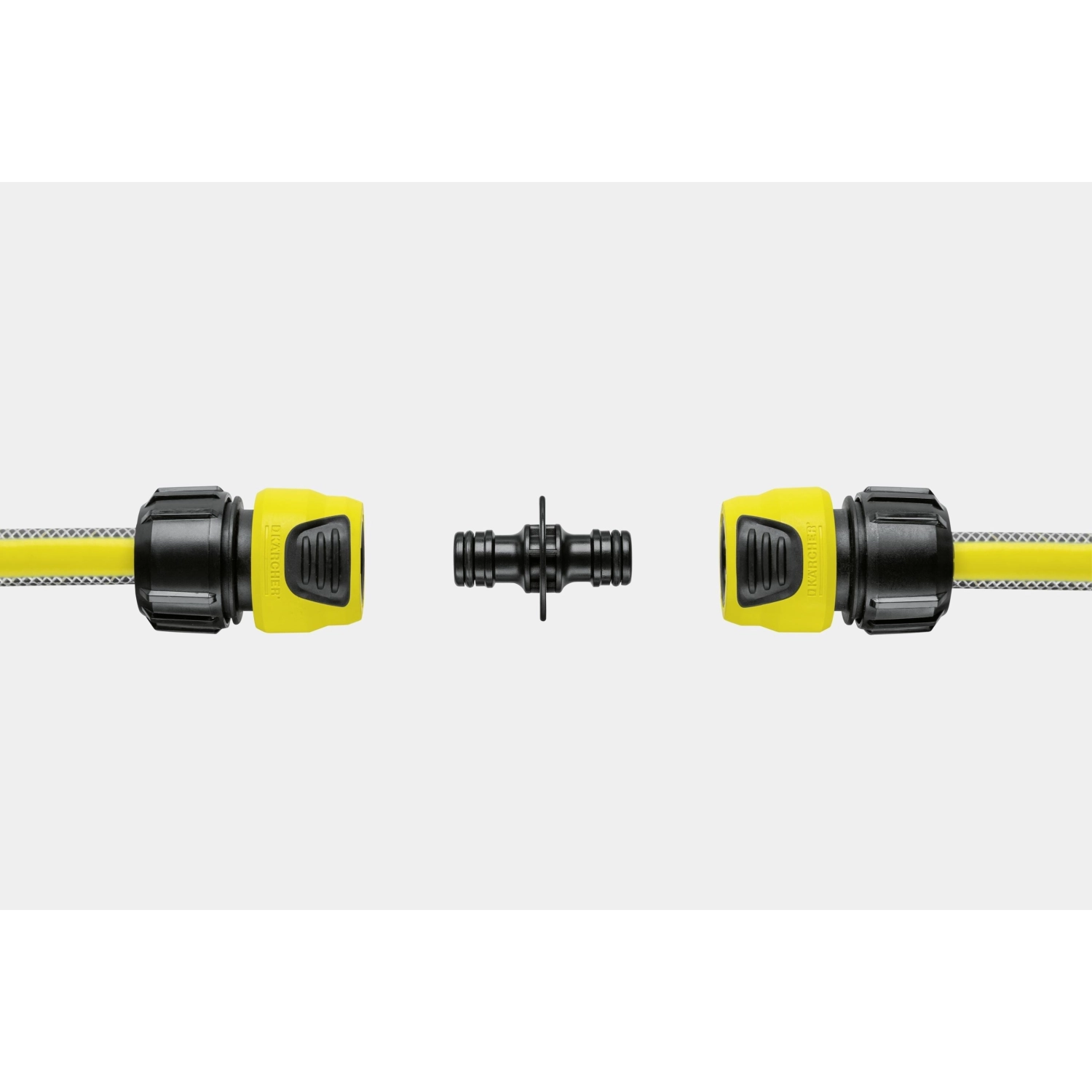 Двухсторонний коннектор для соединения двух шлангов. Этот высококачественный универсальный коннектор подходит для всех стандартных садовых шлангов, имеет эргономичный дизайн, удобство в использовании. Двухсторонний коннектор совместим с тремя наиболее широко используемых диаметрами шлангов и всеми доступными клик-системами.