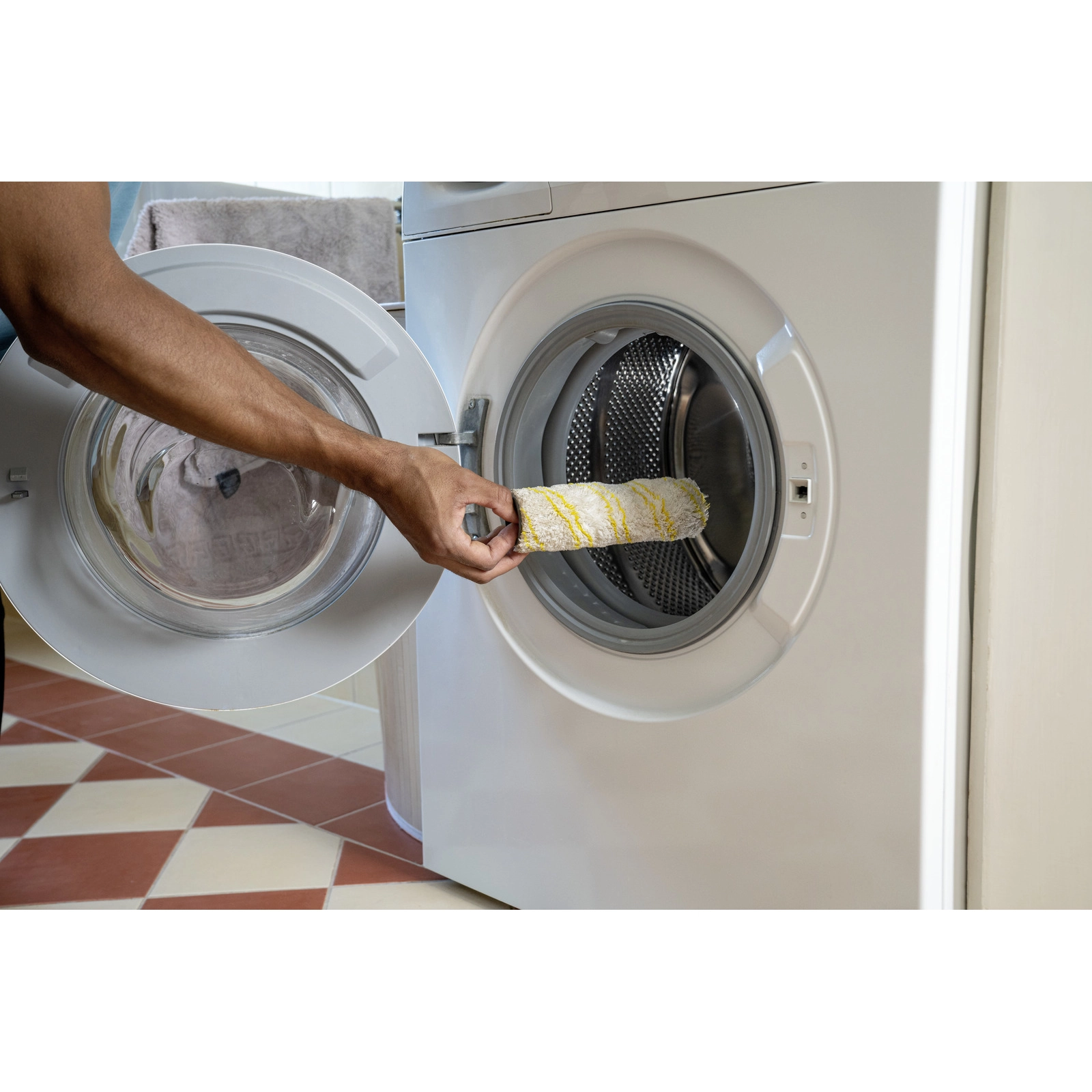 Универсальная роликовая щетка для бережной влажной уборки любых твердых напольных покрытий и ухода за ними. Износостойкая, хорошо впитывающая влагу и не оставляющая на полу ворсинок. Допускает машинную стирку при температуре до 60 °C. Только для электрошвабры FC 2-4.