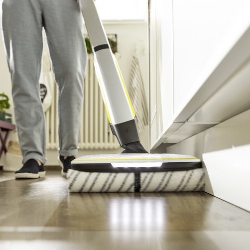 Уборка пылесосом перед влажной уборкой? Теперь в этом нет необходимости: благодаря технологии 4 встречно вращающихся роликовых щеток наш аккумуляторный аппарат для влажной уборки пола FC 7 Cordless Premium легко и быстро удаляет с любых твердых напольных покрытий любые повседневные сухие и влажные загрязнения. Он тщательно очищает полы вплоть до самого края, а благодаря режиму Boost справляется с очень стойкими загрязнениями, при этом, специальный фильтр собирает даже волосы. Это приводит к значительной экономии времени (до 50 % в сравнении с обычными методами уборки)**, и примерно на 20% лучшим результатам очистки по сравнению с обычной шваброй*. В комплект поставки входят универсальное чистящее средство (500 мл), средство для чистки камня (30 мл) и дополнительный комплект роликов для каменных полов, что позволяет сразу же произвести генеральную уборку во всей квартире. Одного заряда мощного аккумулятора достаточно для 45 минут работы аппарата, что соответствует уборке до 135 м² твердых напольных покрытий. В темных углах и нишах светодиодная подсветка настолько хорошо освещает пространство, что никакая грязь не остается незамеченной. Расход воды и скорость вращения автоматически увлажняемых роликовых щеток можно регулировать (предусмотрены 2 режима уборки), а отдельные бачки для чистой и грязной воды исключают необходимость носить ведра с водой.