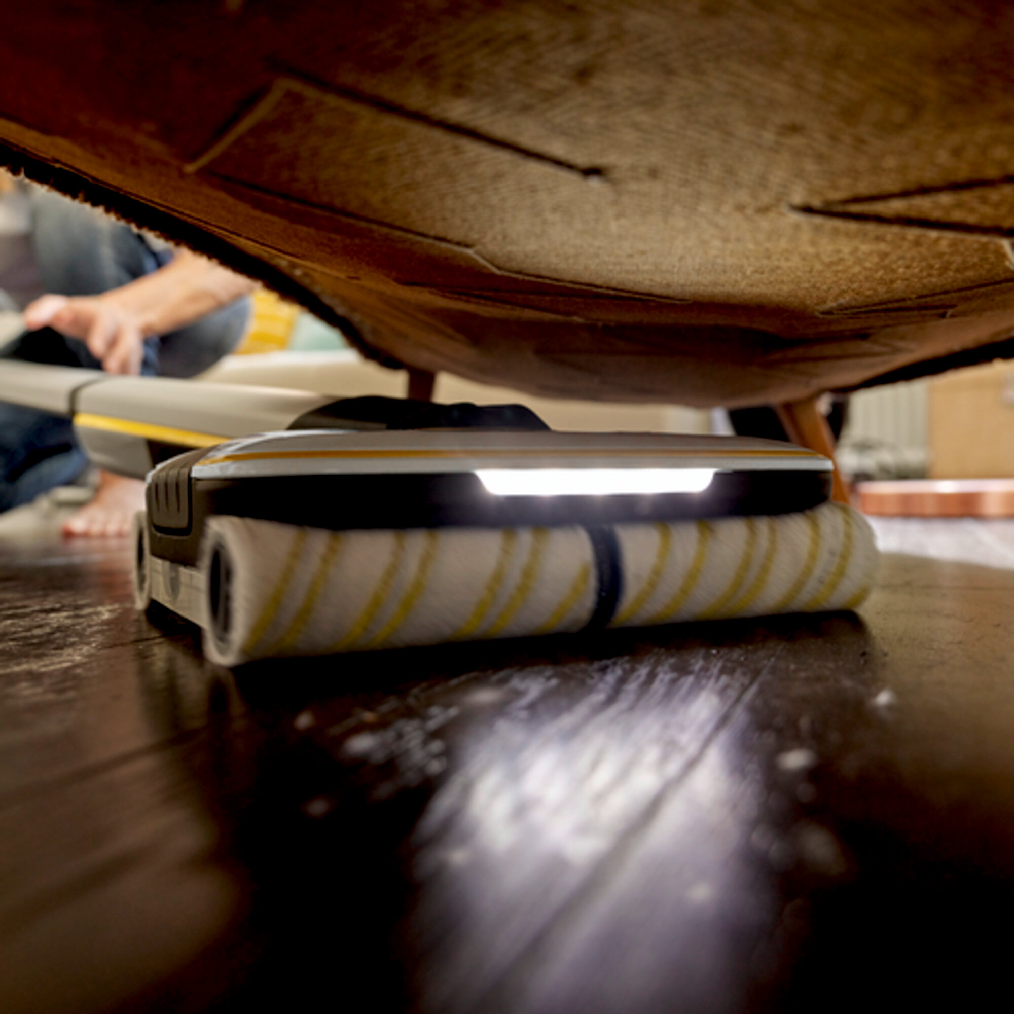 Экономия 50 % времени**: технология привода 4 роликовых щеток позволяет осуществлять влажную уборку без предварительной очистки пола пылесосом. Эффективный сбор волос благодаря специальному встроенному фильтру. Очистка вплотную к краям.