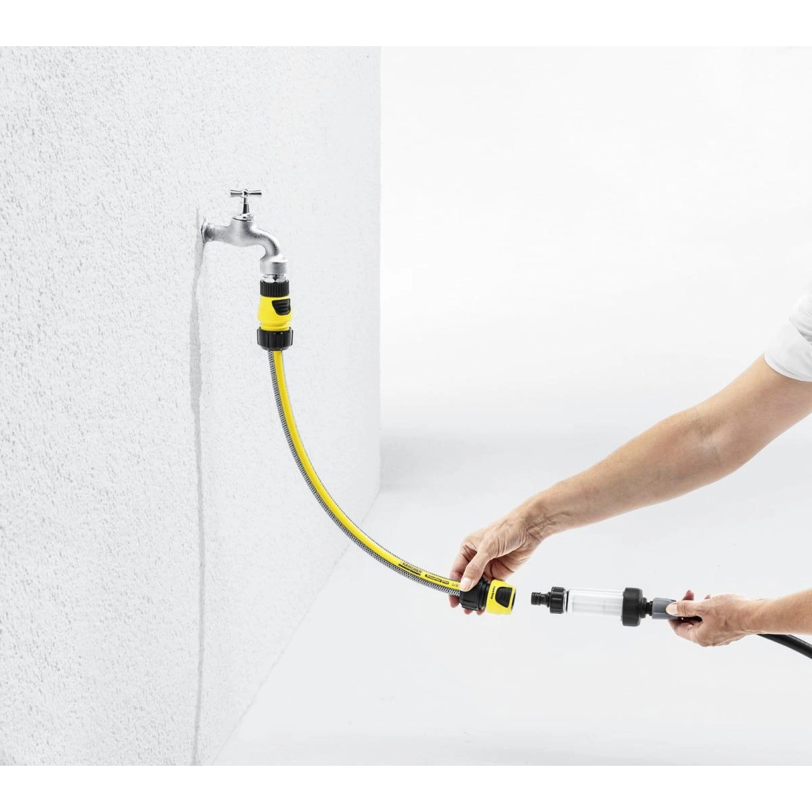 Фильтр. Для защиты системы Kärcher Rain System™ от частиц грязи. Фильтрующий элемент извлекается для очистки. Эргономичная конструкция. Со штуцерами для присоединения к крану G3/4 и системному шлангу.