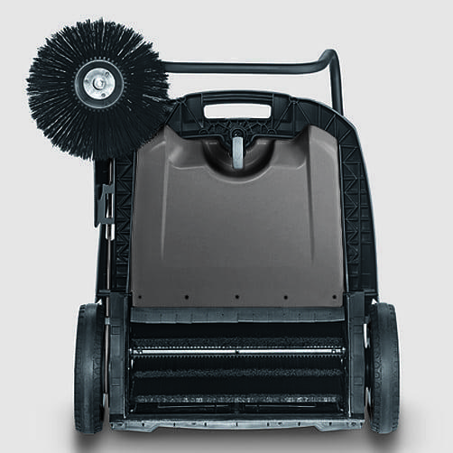 Ручная подметальная машина для простой и легкой чистки на отрытых площадках. В шесть раз быстрее, чем веник. Уборка практически не оставляет пыли благодаря контролю воздухотока и фильтру мелкой пыли. Выдвижные боковые щетки. Главная щетка регулируется по высоте и, следовательно, является приспосабливаемой к различным поверхностям. Главная щетка приводится в движение двумя колесами. Нажимная ручка регулируется в соответствии с высотой и доступностью для пользователя и может быть приведена в три разных положения. Также она может быть сложена в абсолютно плоский вид для компактного хранения. Устройство стандартно поставляется с двумя боковыми щетками.