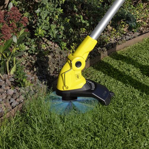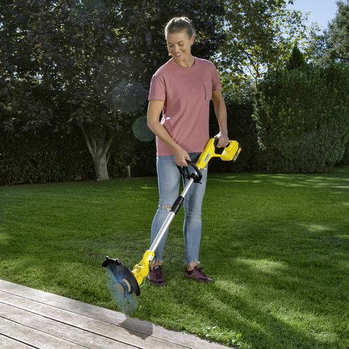 Аккумуляторный триммер LTR 18-30 Battery, оснащаемый витой леской для чистого срезания травы, позволяет без проблем скашивать ее даже в углах и других труднодоступных местах, а также аккуратно обрабатывать края газонов, примыкающие к дорожкам или террасам. Автоматическое удлинение лески обеспечивает постоянную рабочую ширину. Для скашивания травы под низкими препятствиями предусмотрена возможность легкого отклонения головки триммера. Откидная скоба для защиты растений исключает случайное повреждение деревьев или цветочных растений. При этом телескопическая штанга триммера и регулируемая по высоте вторая рукоятка исключают переутомление, обеспечивая работу в удобной вертикальной позе.