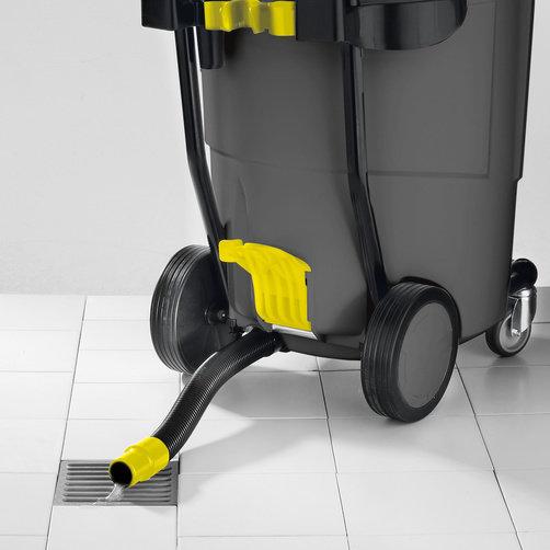 50-литровый контейнер с регулируемой ручкой и сливным шлангом делает пылесос для влажной и сухой уборки NT 50/1 Tact Te H идеальным для безопасного удаления опасной для з..