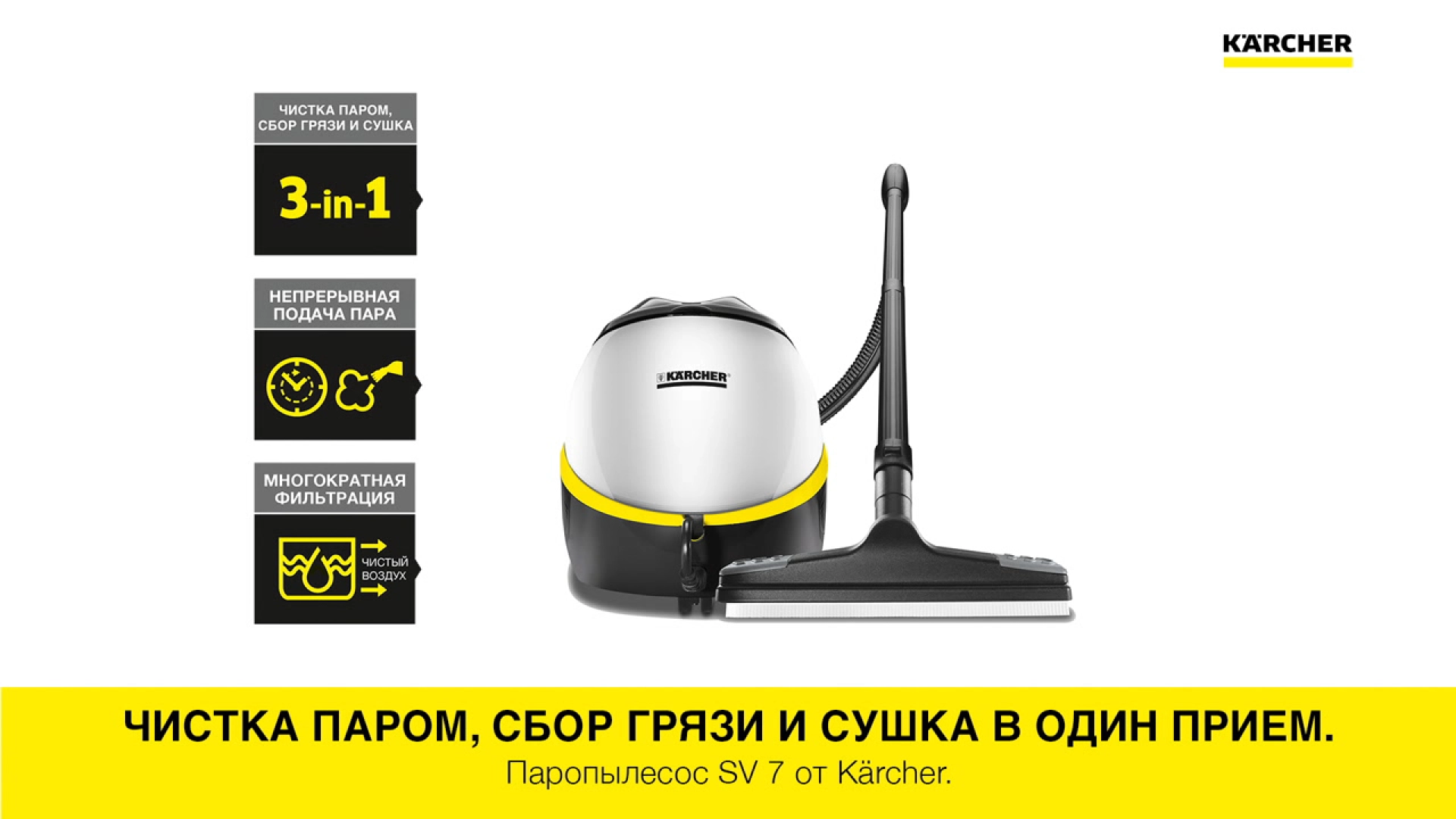 Уборка паром, уборка пылесосом и сушка - новый паропылесос SV 7 сочетает многофункциональность и комфорт в одном аппарате!