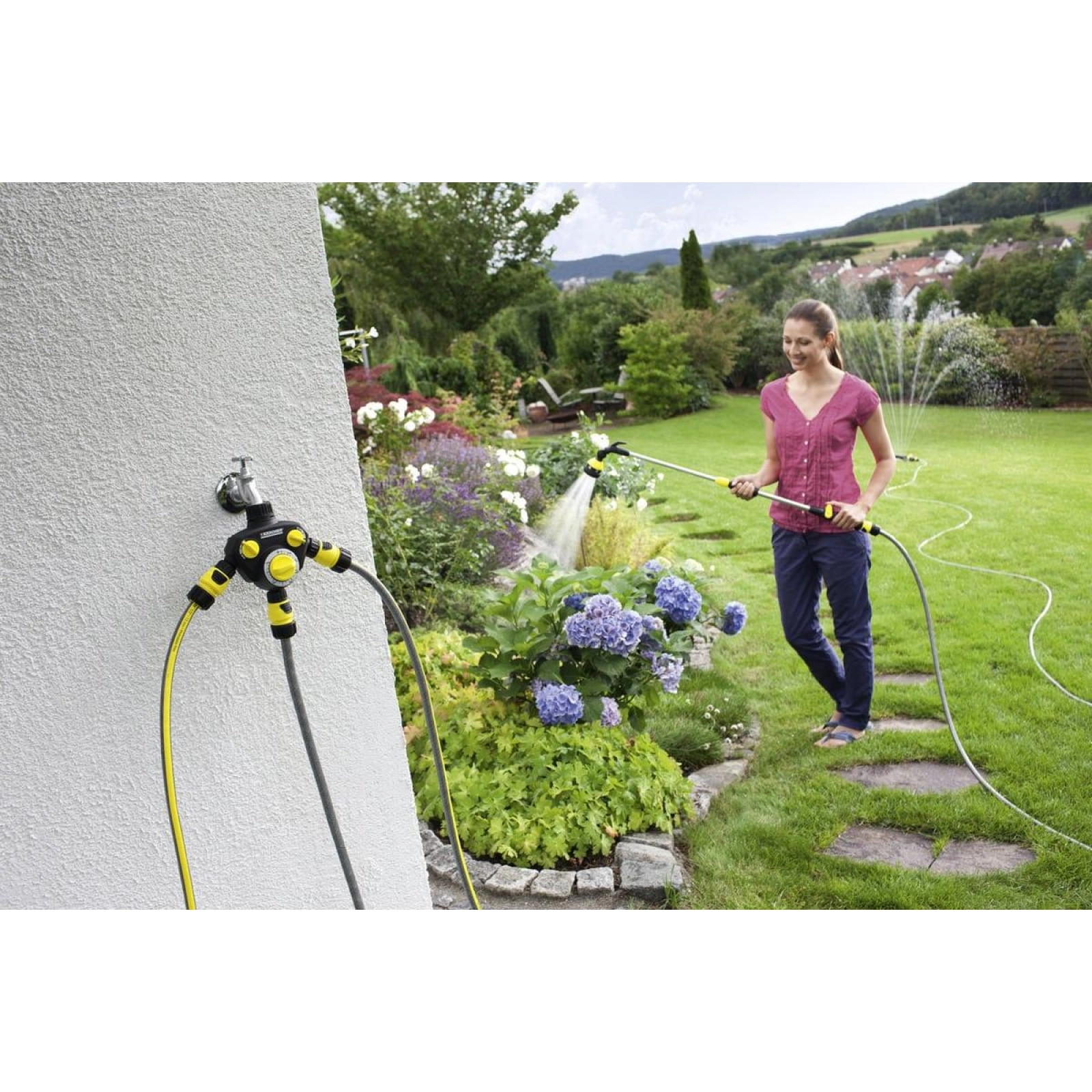 Для присоединения к кранам с резьбой G 1 и переходником G 3/4. Обеспечивает орошение с одновременным использованием до 3 шлангов.