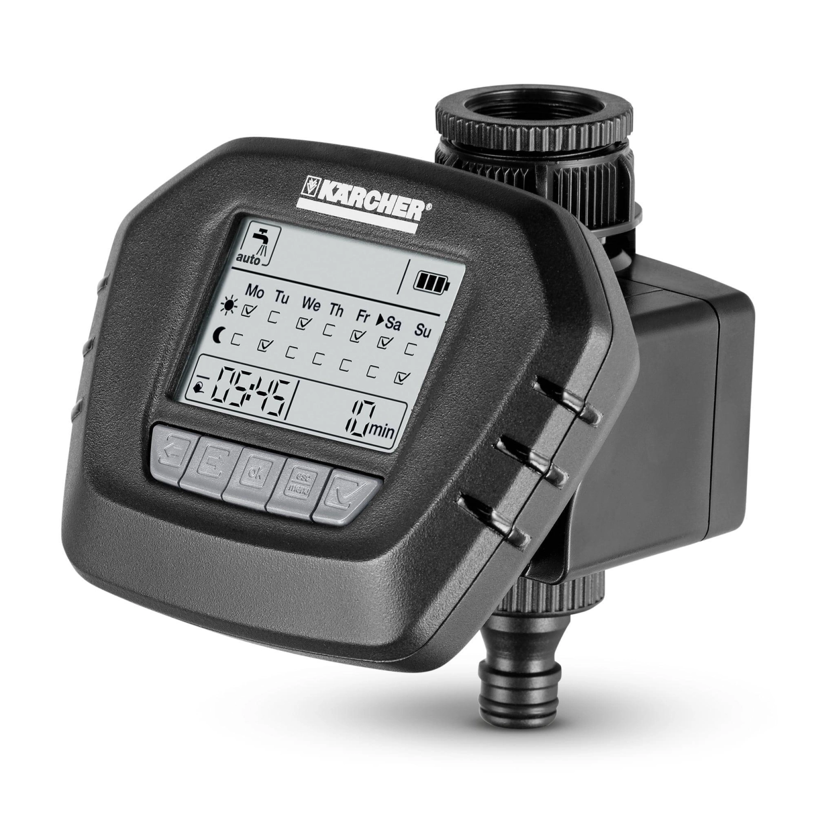 Выбор дней недели и точная установка времени начала и продолжительности полива. Максимальный цикл полива 2 раза в день
