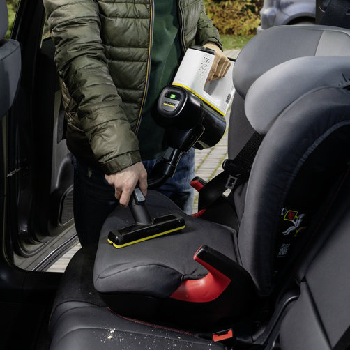 Щелевая насадка со светодиодной подсветкой для эффективной уборки в темных углах. Длинная и эластичная щелевая насадка и гибкий удлинительный шланг для оптимальной и удобной очистки любых поверхностей внутри автомобиля. Большая насадка для мягкой мебели позволяет быстро и тщательно очищать обивку автомобильных сидений.