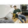 Аккумуляторный пылесос VC 6 Cordless ourFamily Pet гарантирует превосходные результаты уборки, удобен в обращении, не ограничивает свободу движений и способен непрерывно работать до 50 минут от одного заряда. Его мощный (250 Вт) бесщеточный двигатель постоянного тока позволяет легко и тщательно очищать любые поверхности, в т. ч. от кожных чешуек и шерсти домашних животных. При необходимости сила всасывания может быть увеличена путем включения режима Boost. Моторизованная насадка для пола со светодиодной подсветкой пригодна для очистки твердых и ковровых напольных покрытий, а для чистки матрасов и обивки мягкой мебели предусмотрена моторизованная мини-турбощетка. Удобство работы обеспечивается простотой опустошения контейнера для сбора мусора, 3-ступенчатым индикатором состояния заряда аккумулятора и эргономичной конструкцией аппарата, облегчающей очистку пола под мебелью. Значительным преимуществом является также низкий уровень шума, не пугающий животных. Выключатель аппарата снабжен фиксатором, исключающим необходимость постоянно удерживать его в нажатом состоянии. Компактный аппарат можно использовать и в качестве ручного пылесоса – например, для чистки мебели. В комплект поставки включены щелевая насадка, щеточная насадка для мебели «2 в 1», инструмент для очистки фильтра, второй сменный фильтр и настенный держатель с функцией заряда.