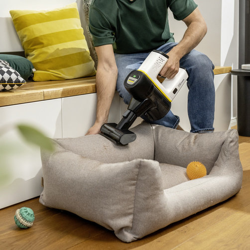 Моторизованная мини-турбощетка легко и тщательно удаляет шерсть животных с мягкой мебели. Простота очистки фильтра – важное преимущество для владельцев домашних животных, которым приходится часто очищать фильтр.