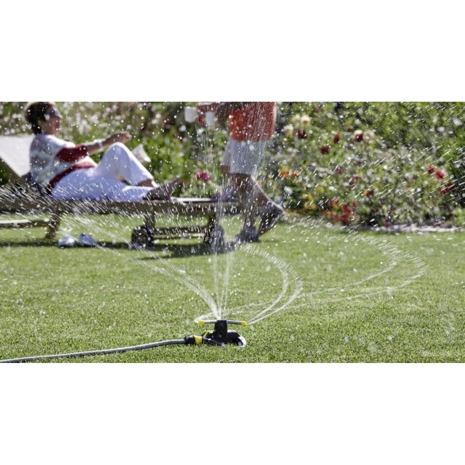 Дождеватель круговой RS 130/3. Зона орошения: при 2 барах диаметр полива 11м, площадь полива 95 кв.м; при 4 барах диаметр полива 13м, площадь полива 133 кв.м.